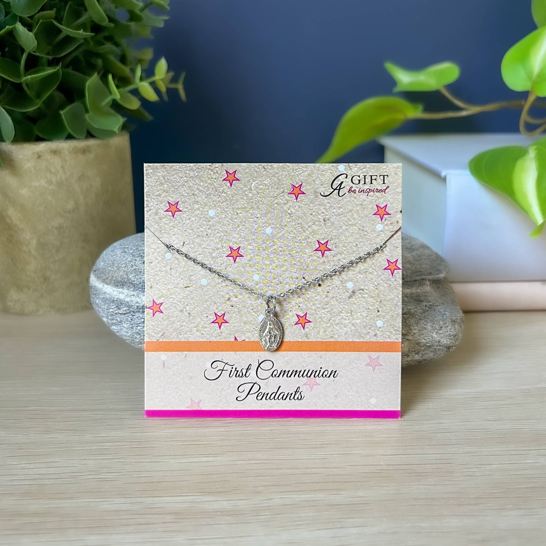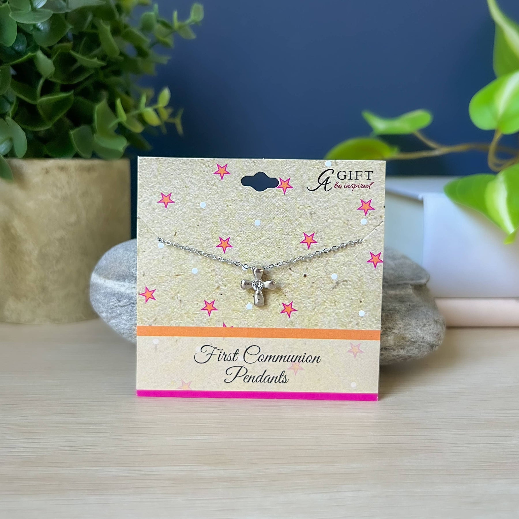 Silver-Finished First Communion Pendants Our First Communion Pendants from Abbey & CA Gift are an elegant keepsake reminder of such a special day. These silver-finished pendants make a thoughtful gift for commemorating this significant religious milestone.