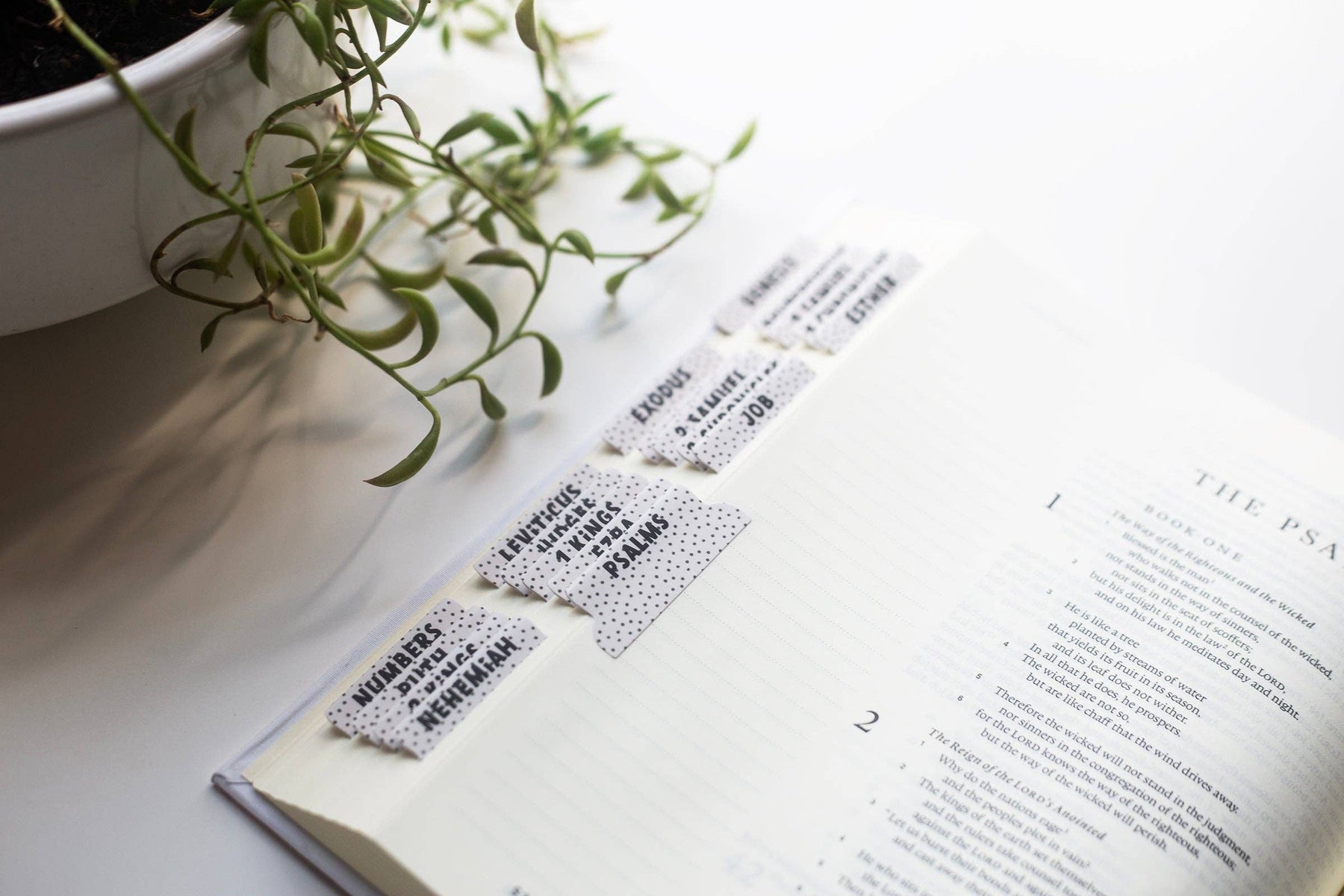 Let’s make your Bible even more functional with these NEW & IMPROVED adorable Bible Tabs. Details: + Includes all 66 books of the Bible plus 6 blank bonus tabs + Professionally printed on durable water resistant laminated vinyl sticker paper + QR code on product links to a video tutorial of how to apply tabs.