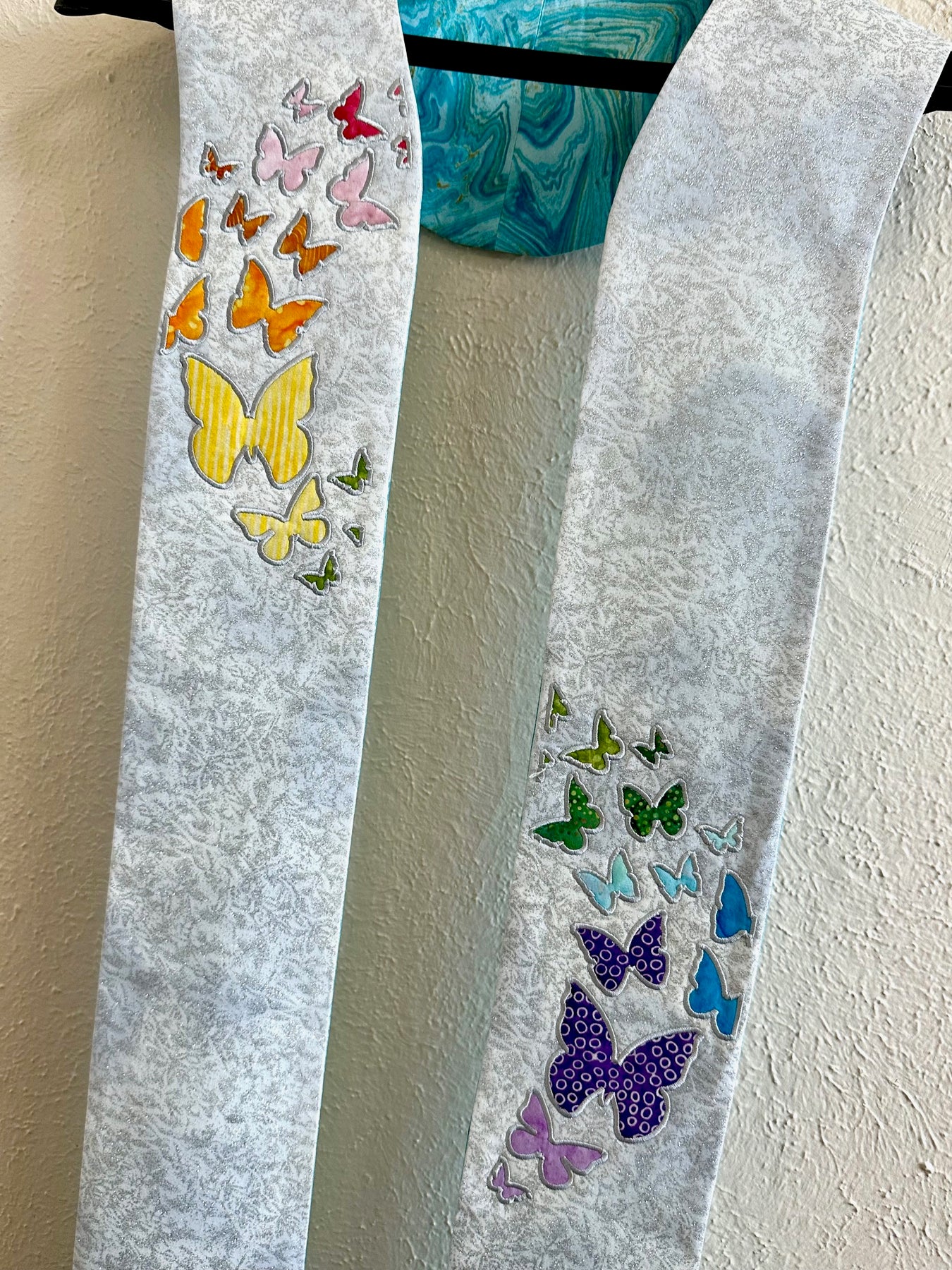 "Resurrection" Pastor Stole - Silver/White Glittered