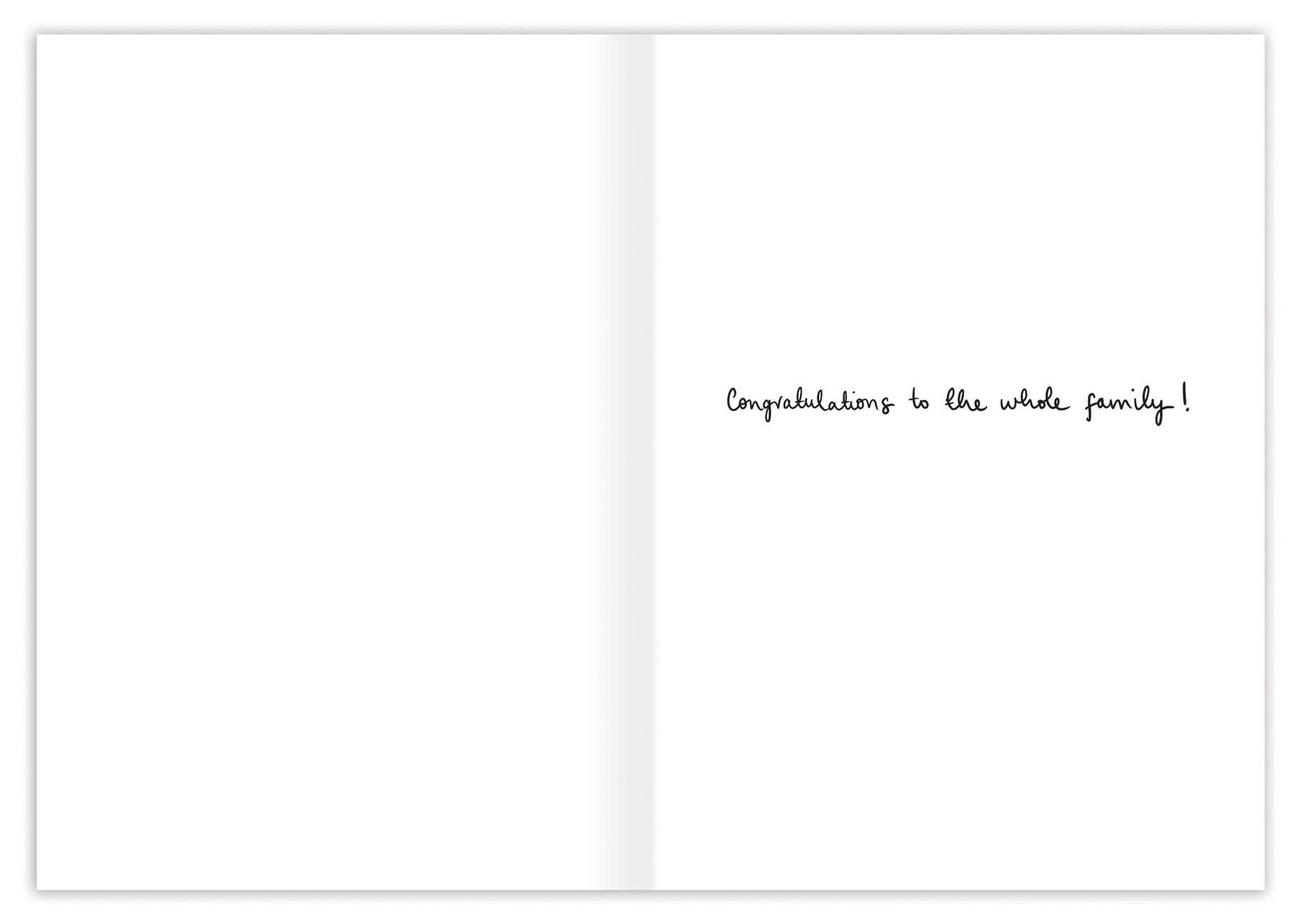 "Welcome To The World Little One" Inside verse: Congratulations to the whole family! • Gold foil details • Illustrated by Louise Mulgrew • Size: A6, 4.5" x 6.25" • Paired with Brown Kraft envelope • Printed in the USA on high-quality, recycled paper