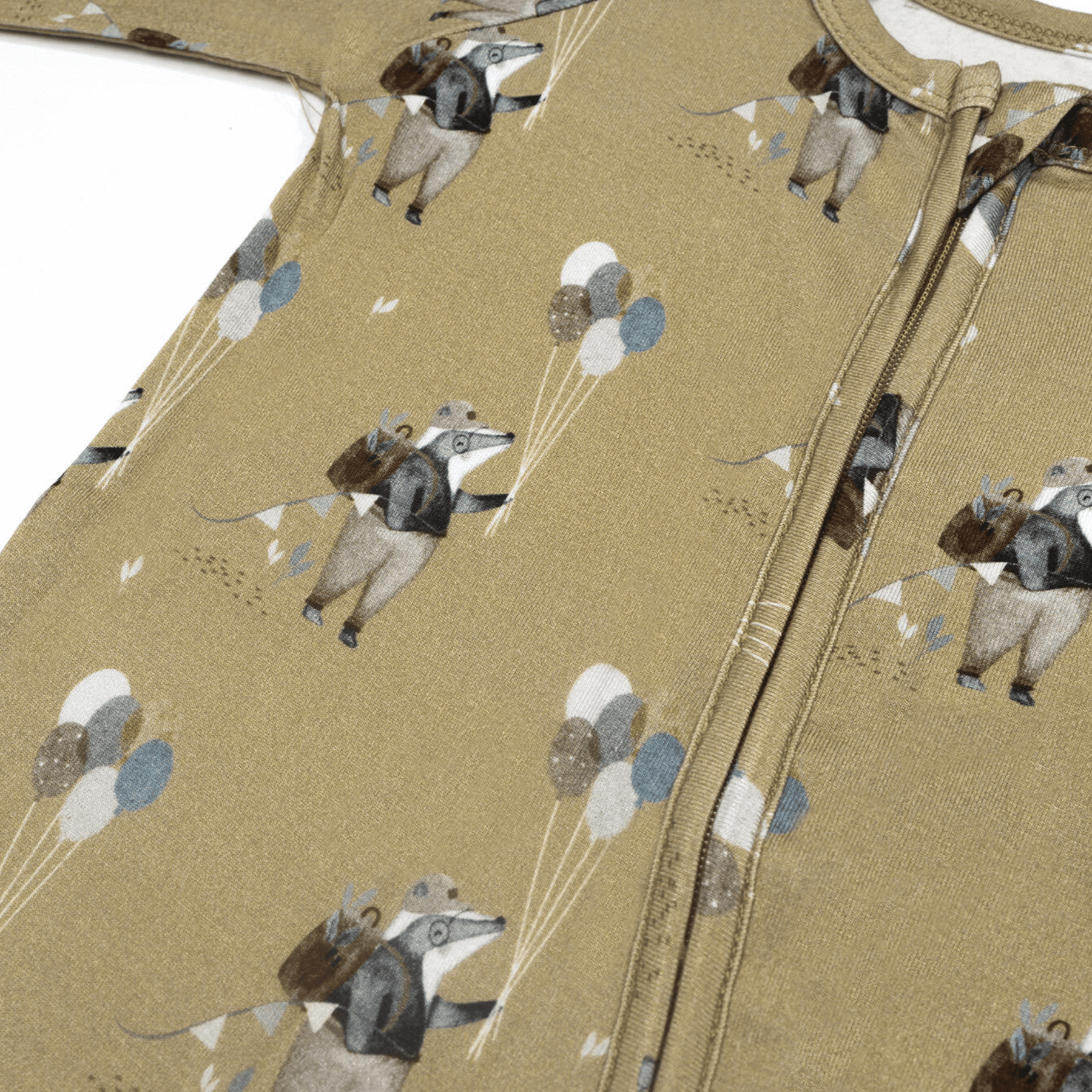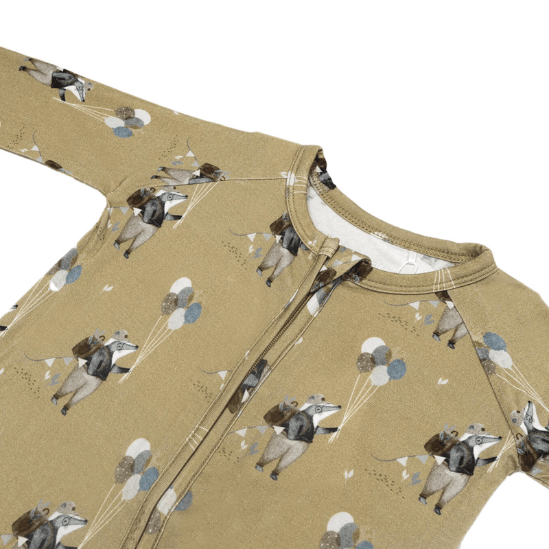 This romper is made from ultra-soft and sustainable bamboo fabric, featuring a playful badger with balloons pattern that's sure to stand out. The zippered design makes it easy to put on and take off, and the snaps at the legs make diaper changes a breeze. Plus, the stretchy material is comfortable and perfect for active babies.