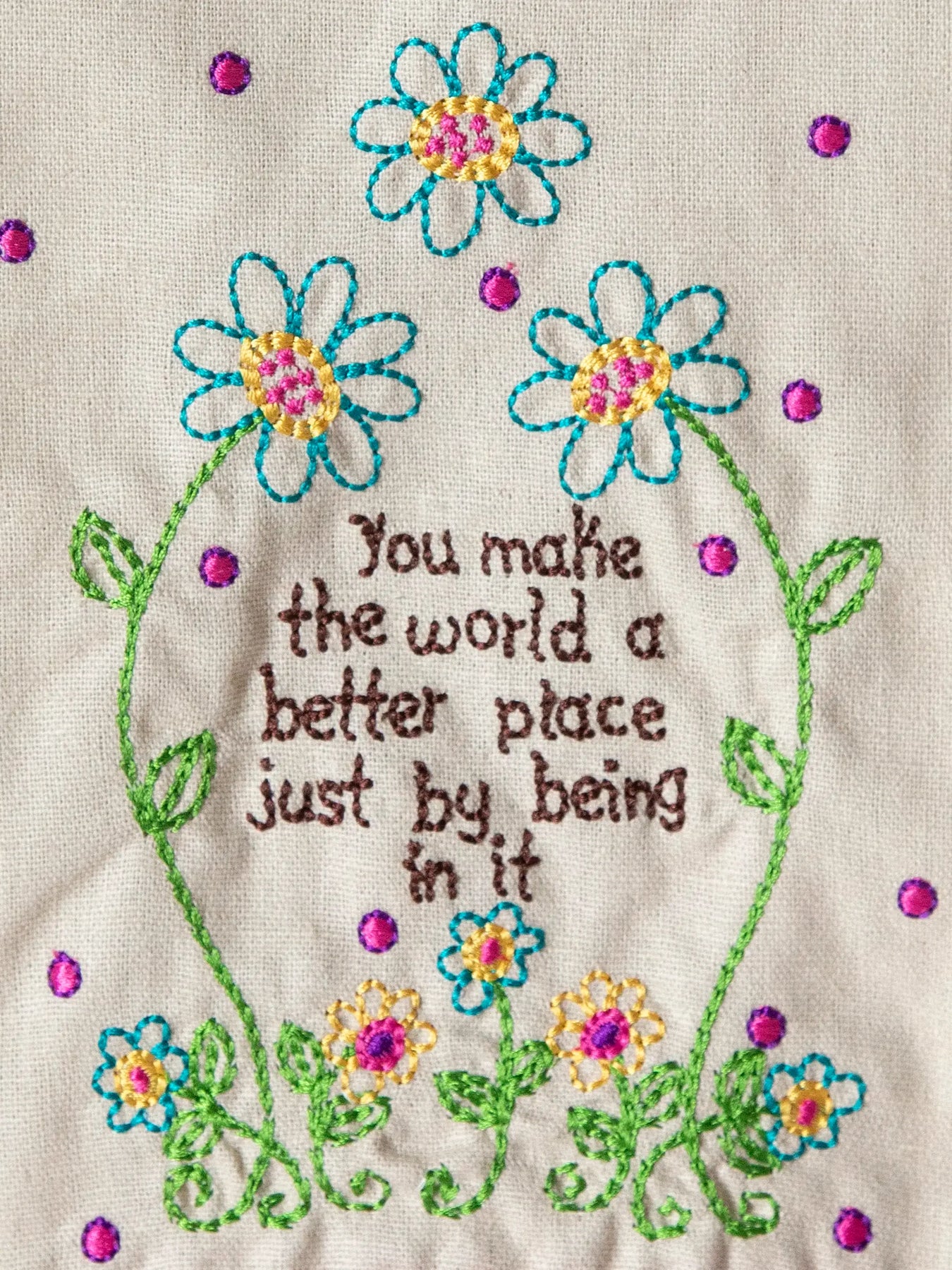 "You Make The World Better " Linen Embroidered Hand Towel