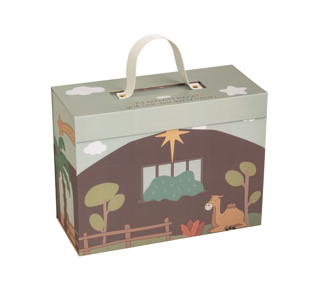 Transform your holiday traditions with this charming nativity play set that brings the classic story to life through creative play. The delightful paper-wrapped suitcase box opens to reveal a complete manger scene ready for imagination and color. Inside, you'll find a collection of color-your-own characters just waiting for your child's artistic touch, along with a pack of vibrant markers to bring them to life. Perfect for ages 3 and up, this interactive set combines storytelling, art, and holiday spirit in one portable package. Whether displayed on a shelf or taken on adventures, it's a wonderful way to celebrate the season while encouraging creativity and hands-on fun for the whole family.