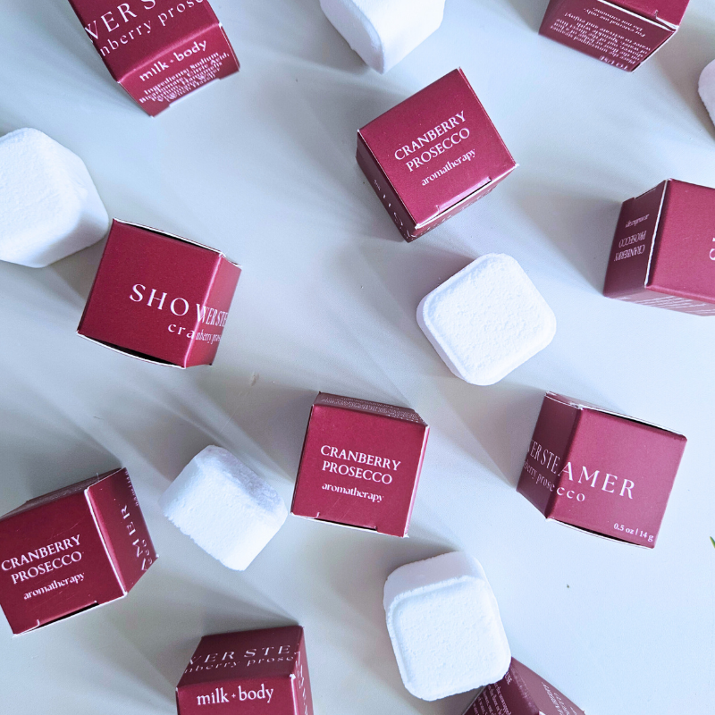 Cranberry Prosecco: tart + bubbly | Check out our newest aromatic delights: seasonal shower steamers. These cuties are big enough to deliver a fragrant burst in the shower but small enough to make the perfect gift topper for yourself or a friend! Perfect stocking stuffer!