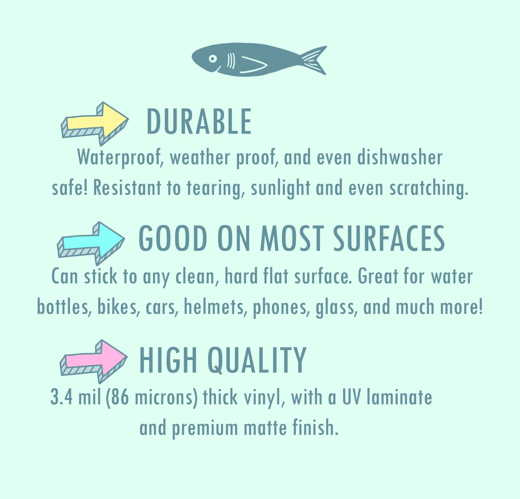 *Approximately 3" x 2.44" *Printed on water-resistant, coated vinyl. *Thick, durable vinyl with a UV laminate. *Weatherproof, waterproof, and scratch-resistant. *Dishwasher safe. *Lovingly designed at our studio in South Carolina.