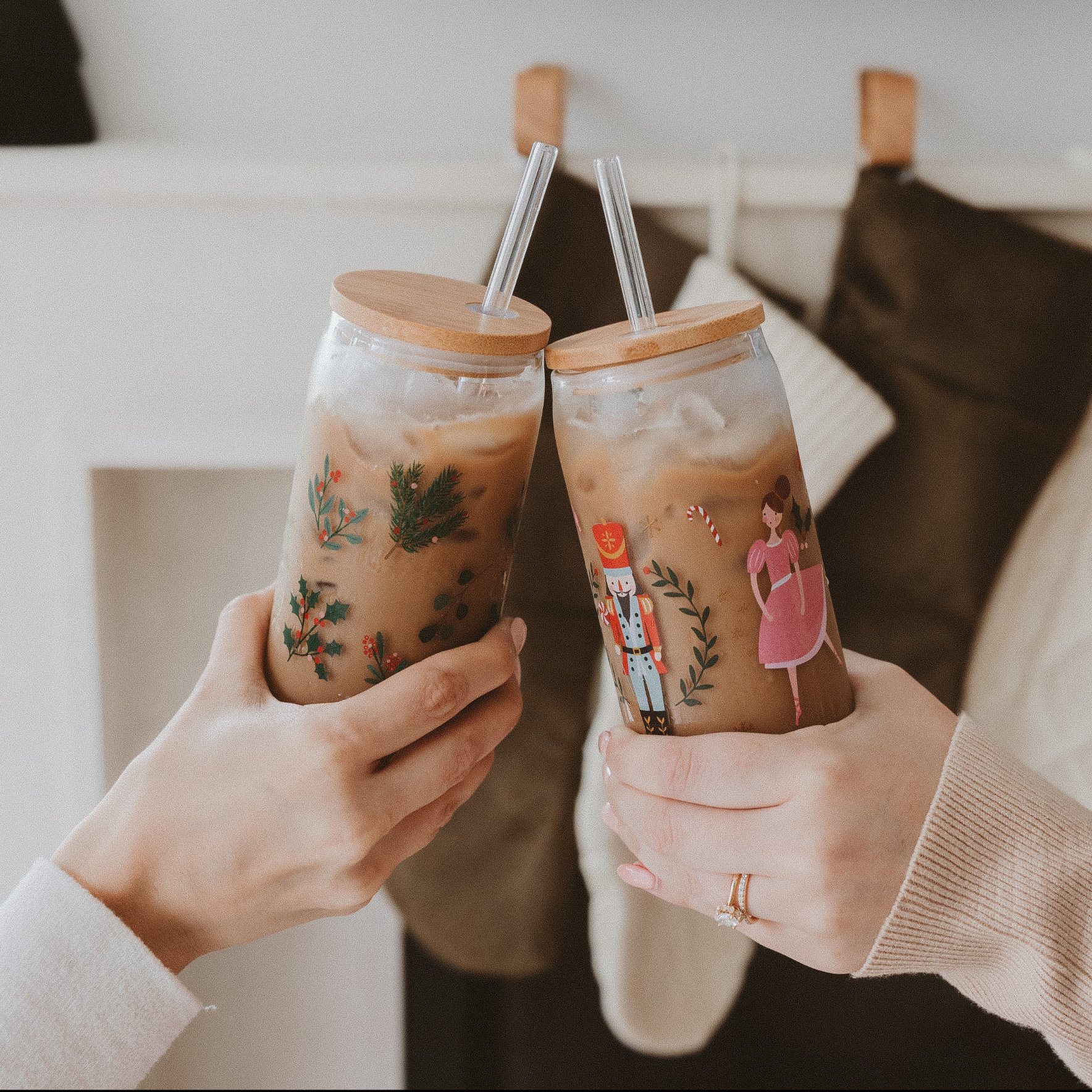 DETAILS: • 17oz glass can • Holiday greenery pattern decal design • Size: 6" x 2.625" (8" tall w/ straw) • Clear can with bamboo lid • Glass straw included • Designed in the USA, Imported • Style No. GT008 CARE: • Hand Wash Only • Wash Before Use and Avoid Abrasive Cloths When Cleaning • Do Not Microwave