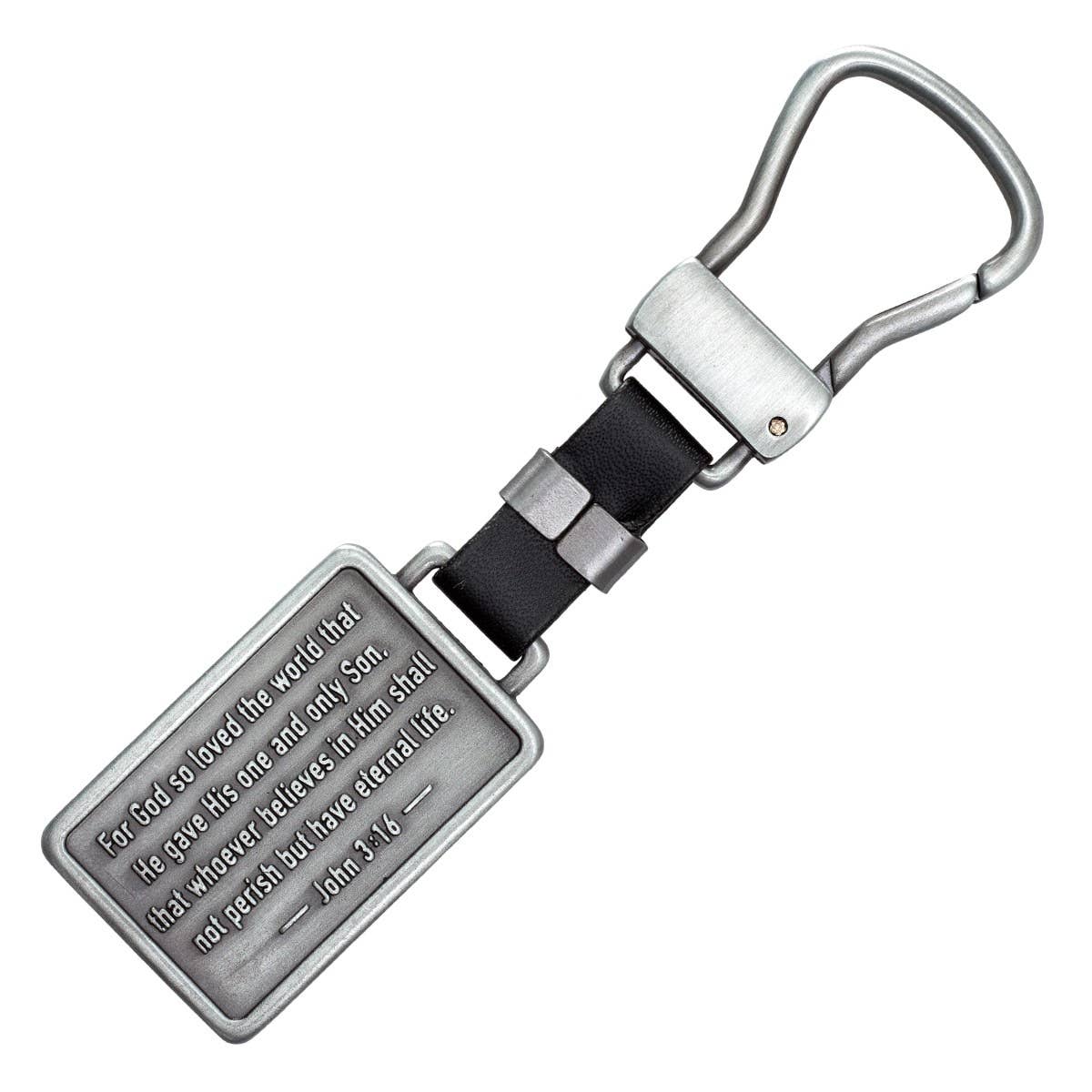 The John 3:16 Silver Metal Cross Key Ring in Gift Tin captures the gospel message simply and handsomely in a practical accessory you will use daily.