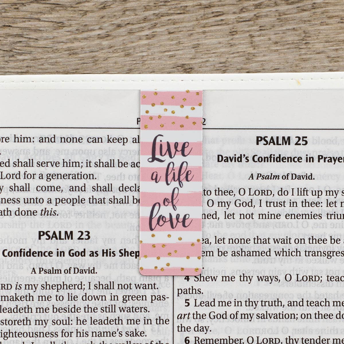 The Sparkle Magnetic Bookmark Set features 6 inspiring bookmarks in fun pink and mint green designs accented with gold foiled hearts and polka dots. Designs repeat on the back of the bookmarks. She will happily fix the magnetic bookmarks to her important keepsakes, from a treasured book and journal to a favorite childhood Bible. Each time she opens up her book or Bible, she will be motivated to live her life for Christ.