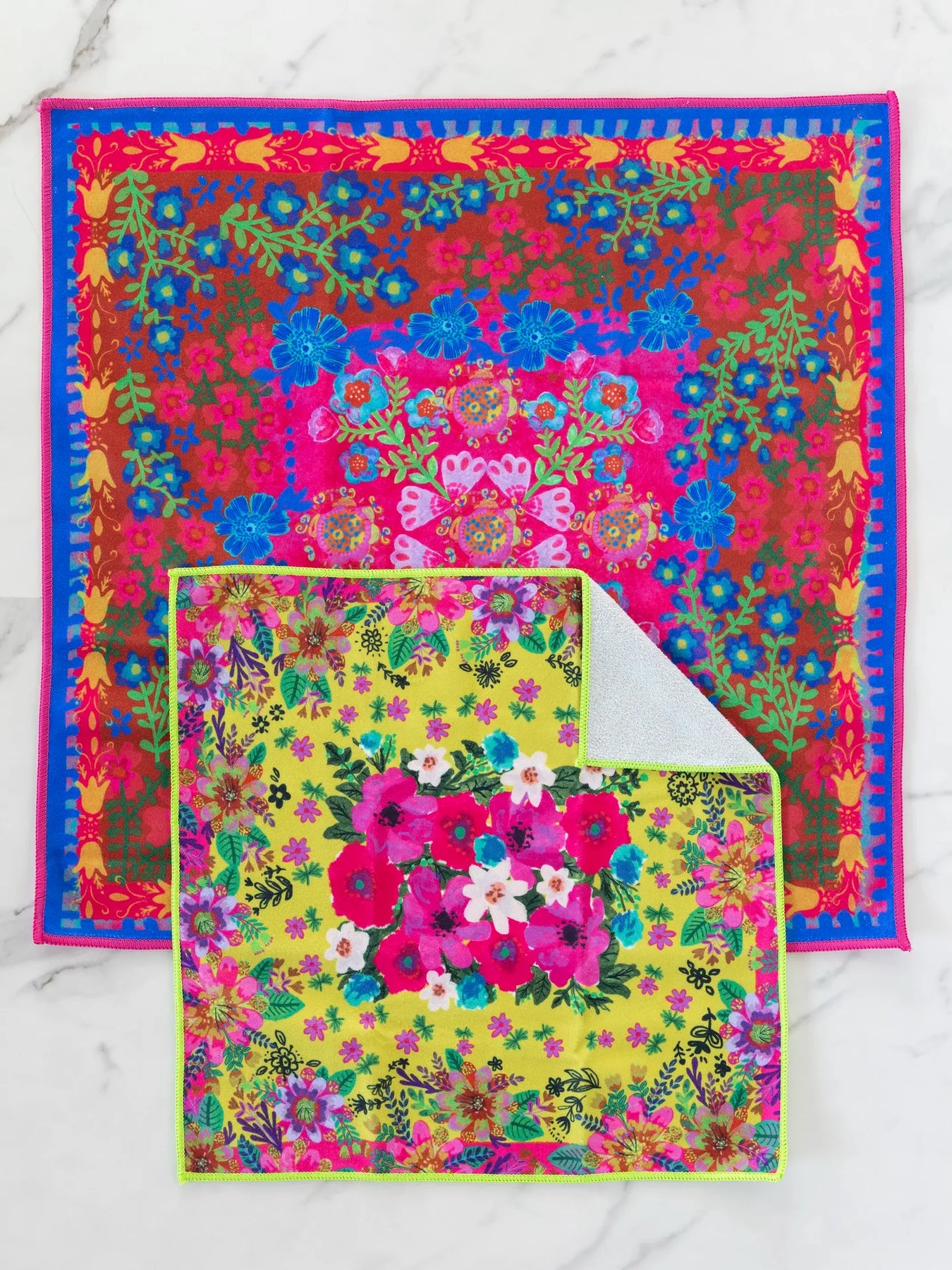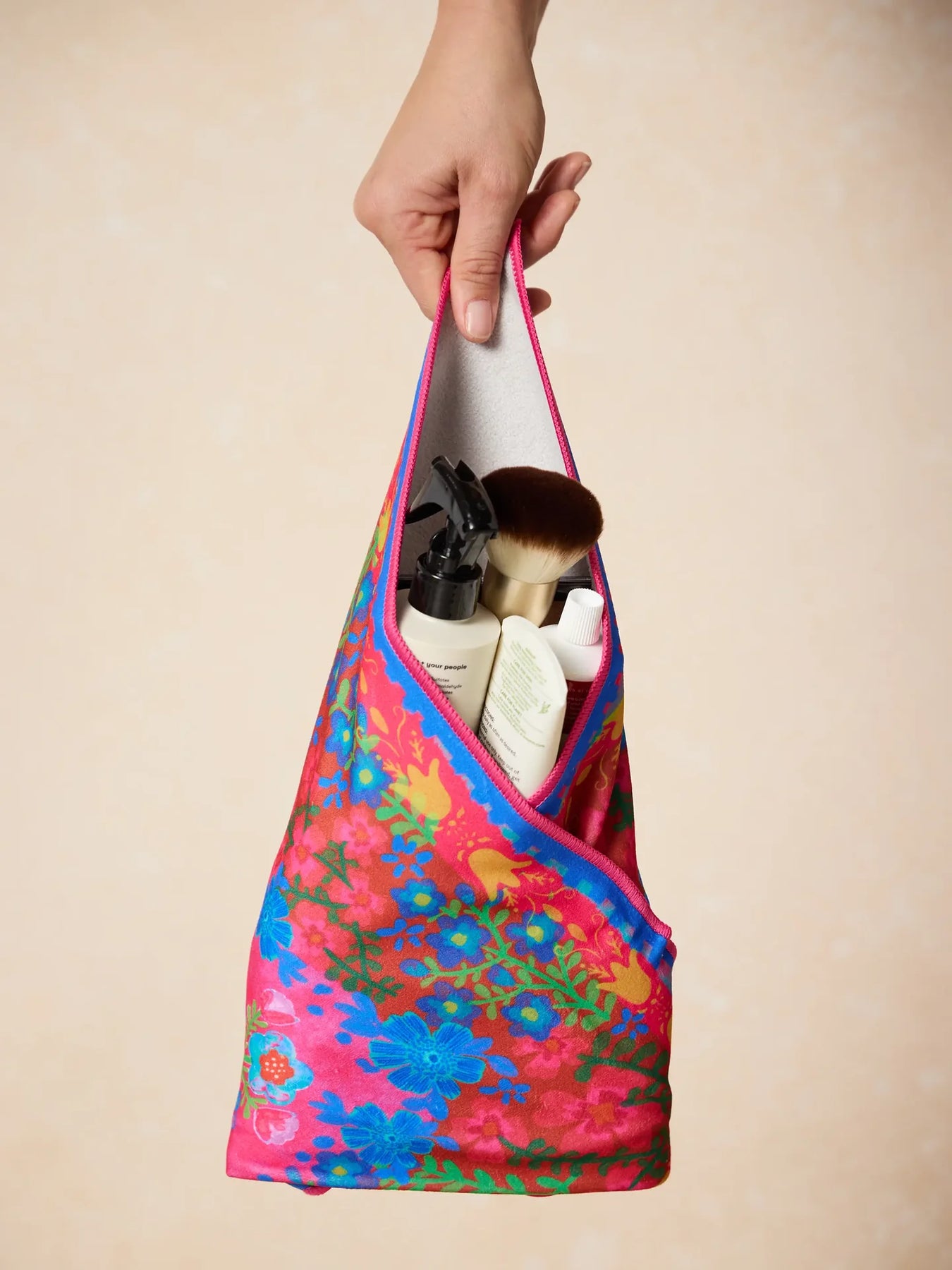 It sticks to itself—like magic! Just lay your things out, fold it up, and it holds everything together. We love using it for toiletries and makeup while traveling so everything can stay neat and spread out on the counter.
