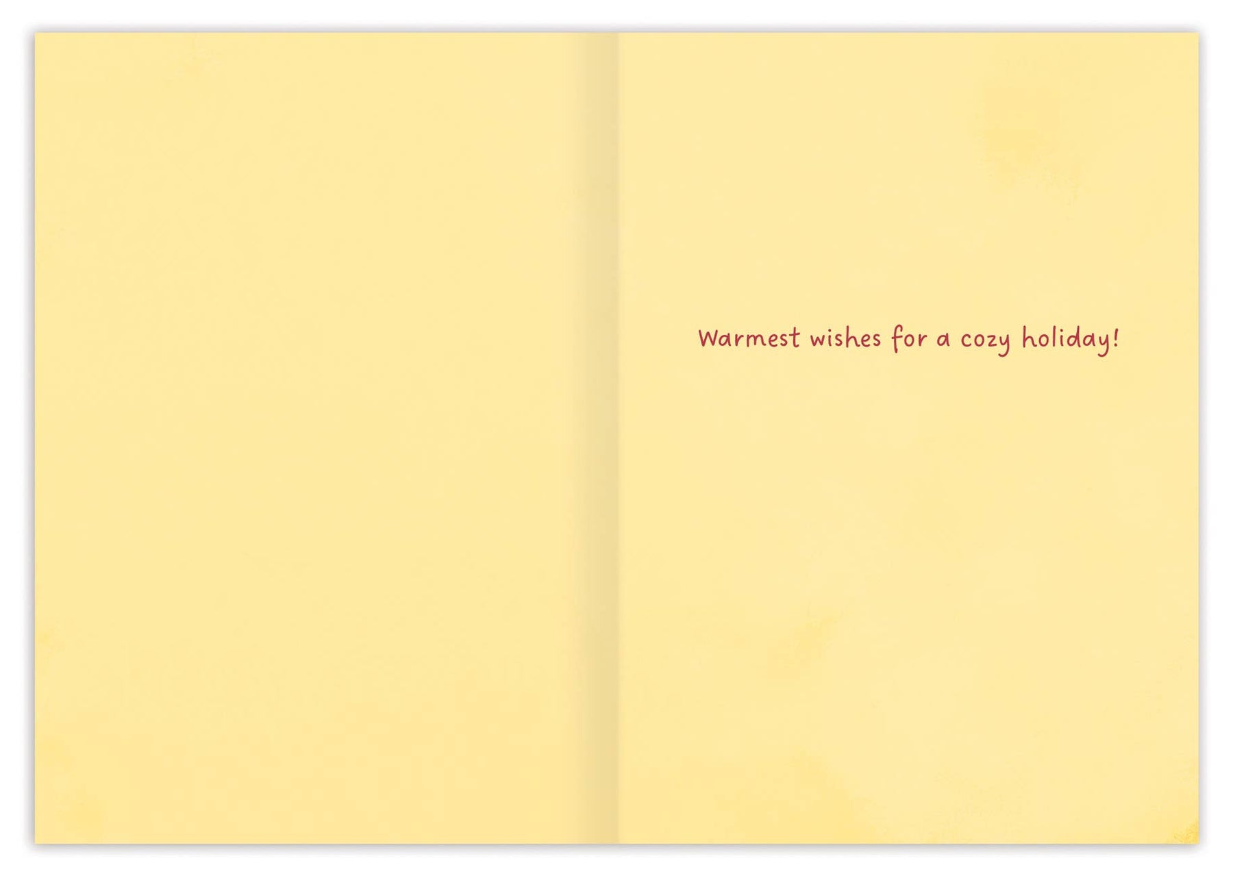 Inside verse: Warmest wishes for a cozy holiday! • Illustrated by Joy Laforme • Size: A6, 4.5" x 6.25" • Full-color inside • Paired with Warm White envelopes • Printed in the USA on high-quality, recycled post-consumer waste paper