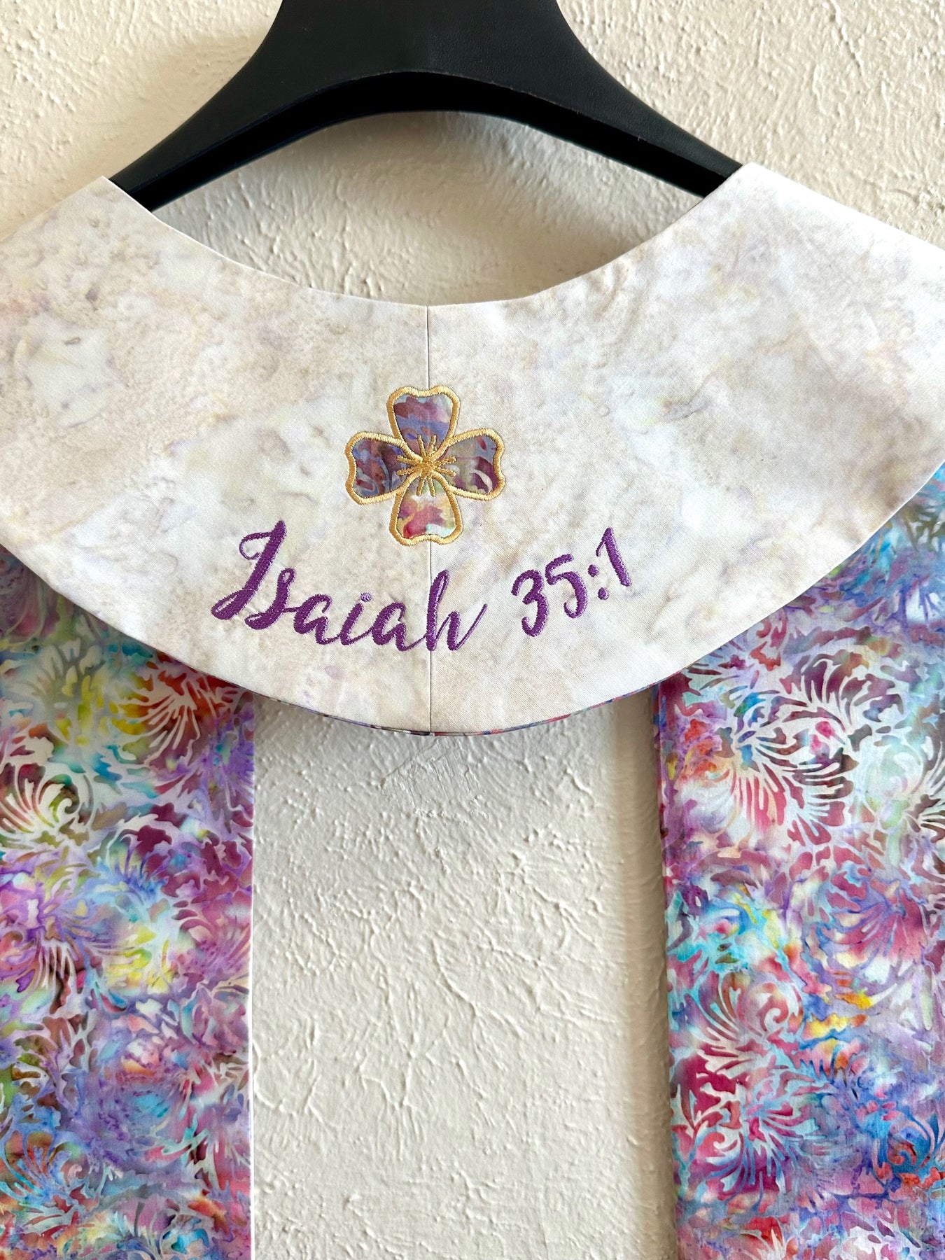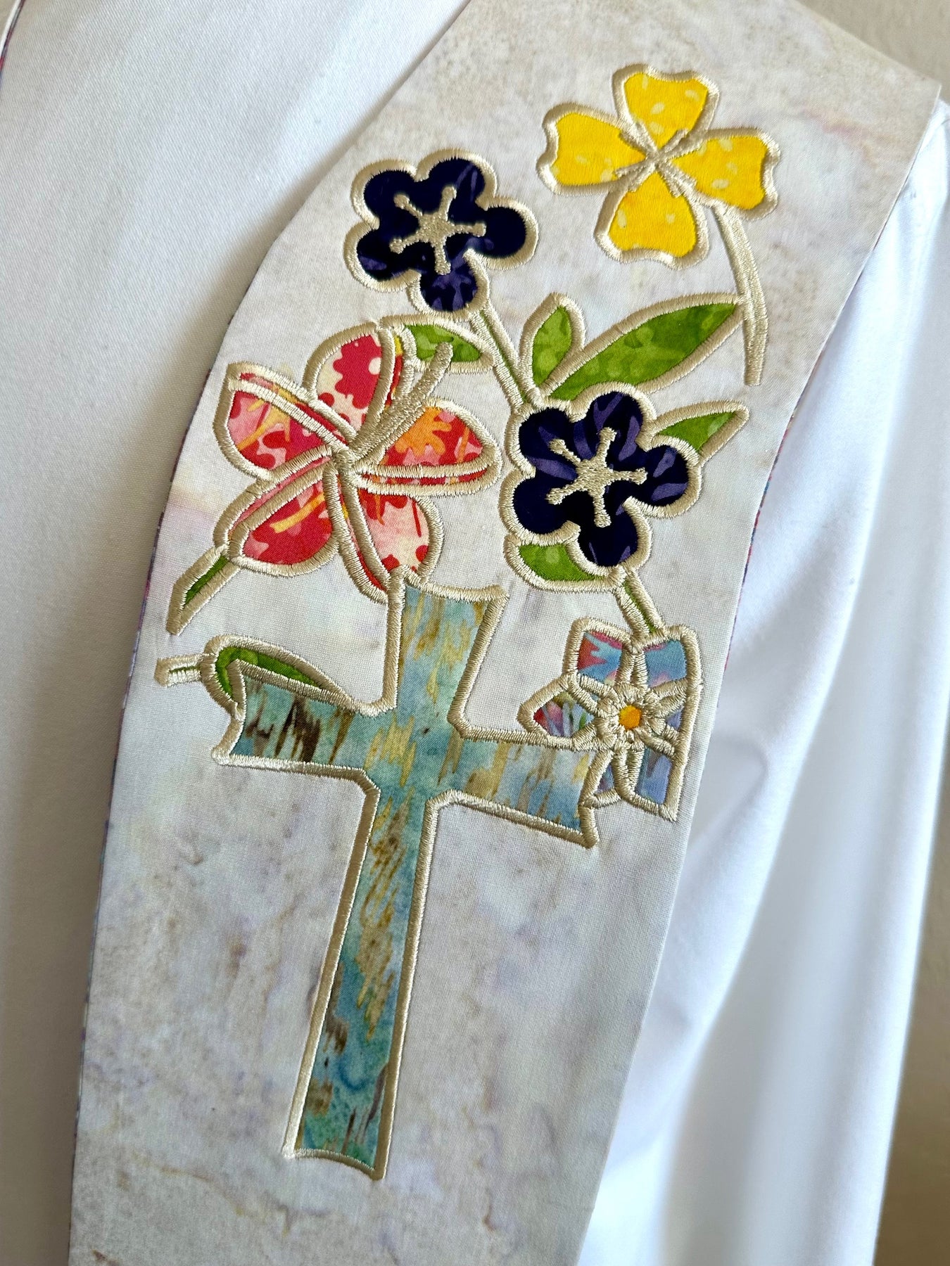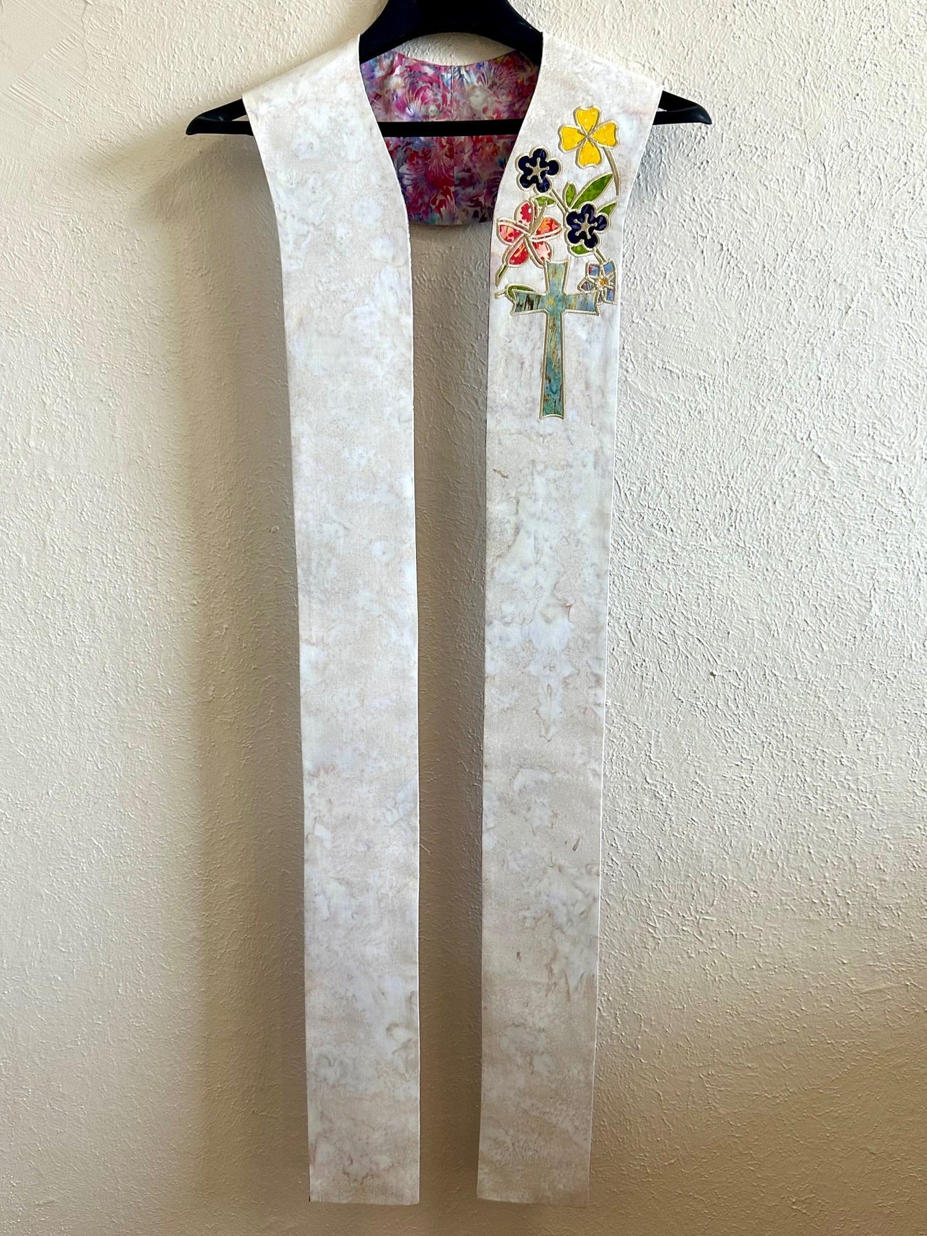 "Flowering Hope" Pastor Stole - Abridged Design - White Marble