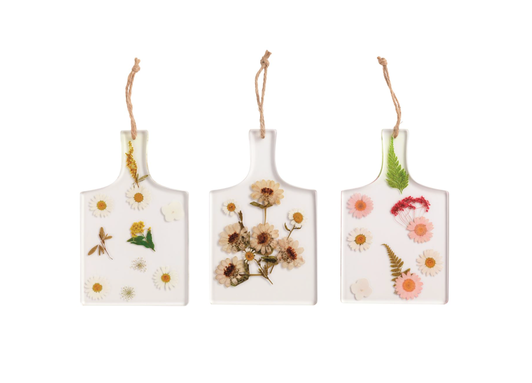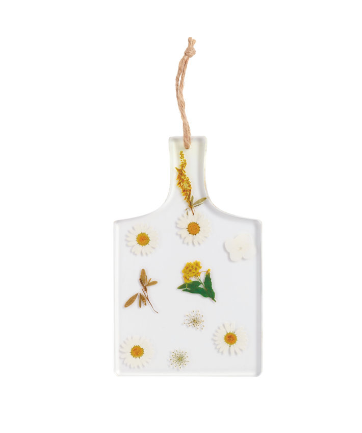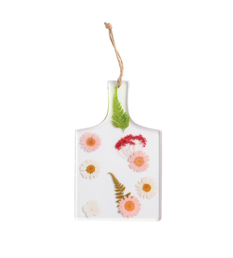 Celebrate nature's delicate beauty with this artisan paddle board, where real pressed flowers are preserved in clear resin. Each piece is a one-of-a-kind creation that brings organic elegance to your kitchen, dining table, or gift collection. Perfect for serving, displaying, or simply admiring the craftsmanship that honors botanical details.