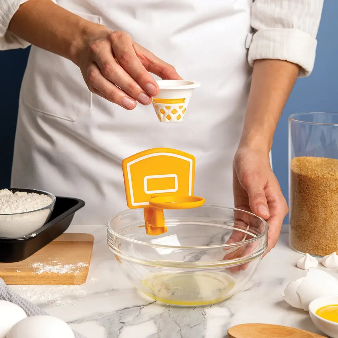 Meet Dunk N Egg, the Yolk Separator - This playful kitchen gadget combines a unique basketball net design with efficient egg yolk separation. Score big in the kitchen with this fun and practical tool. Gag Gifts for Foodies and NBA Fans - Looking for unique kitchen gadgets or basketball gifts? Dunk N Egg makes a fantastic gift for home chefs and basketball fans. These egg separators are unique cooking gifts that blends novelty and utility! OTOTO's cool kitchen gadgets can also be used for poached eggs, meringues, portion control, and more. Explore endless culinary possibilities with this versatile kitchen companion. A Slam Dunk in Clean-Up Convenience - Cleaning Dunk N Egg is a breeze. Rinse it under warm water for easy maintenance. Made from safe, durable, and food-grade materials, these cool gifts prepping eggs ensures egg hygiene and longevity.
