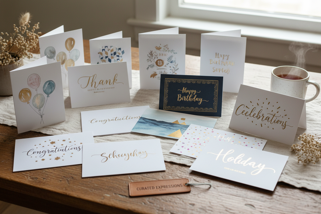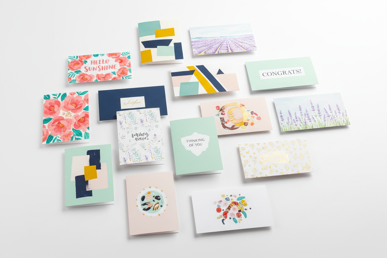 a bunch of greeting cards for various occasions displayed in an enticing way to encourage someone to subscribe to a card of the month club
